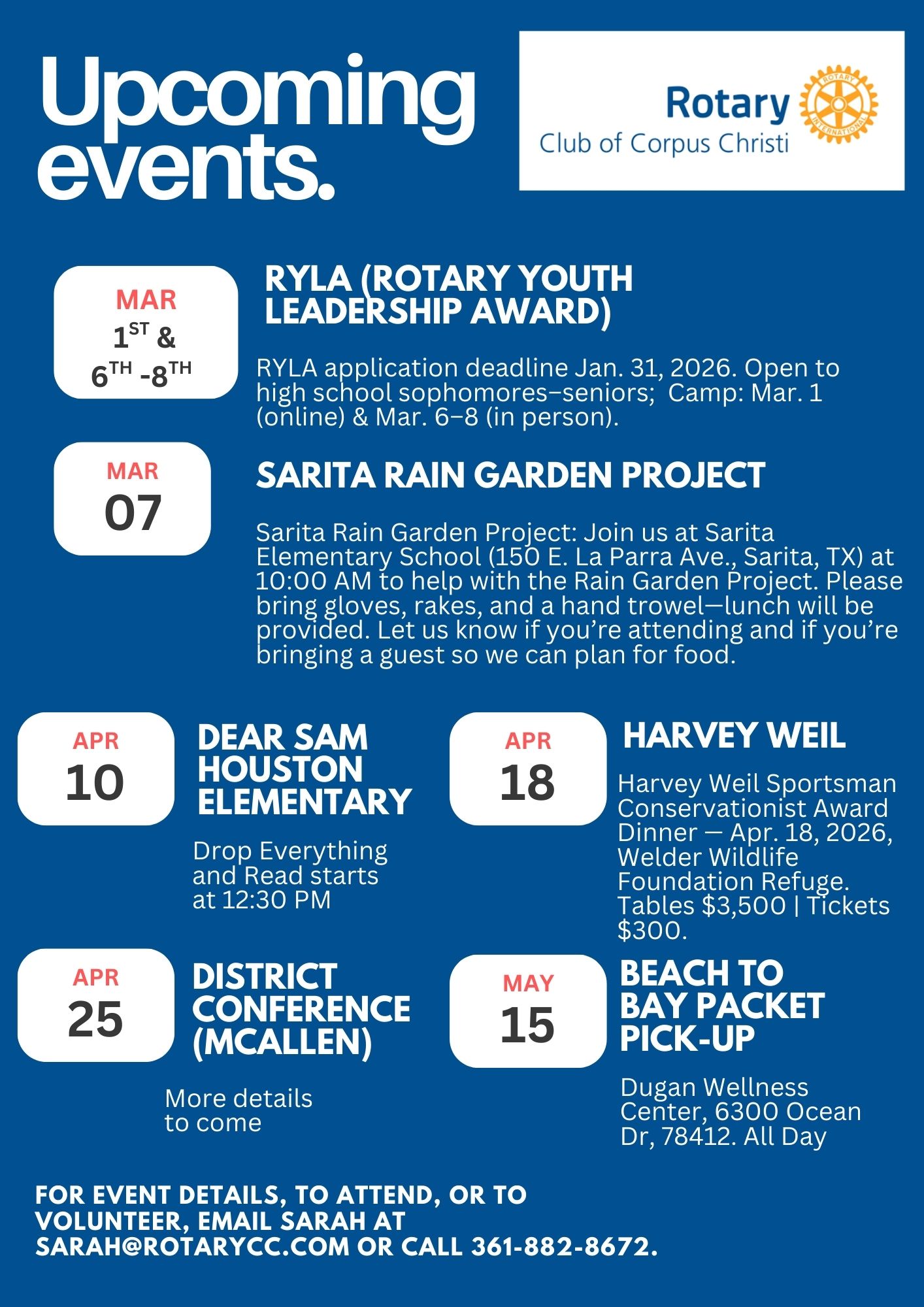 From socials to service projects and special community events, our calendar is full of ways to connect and make an impact beyond our regular meetings.